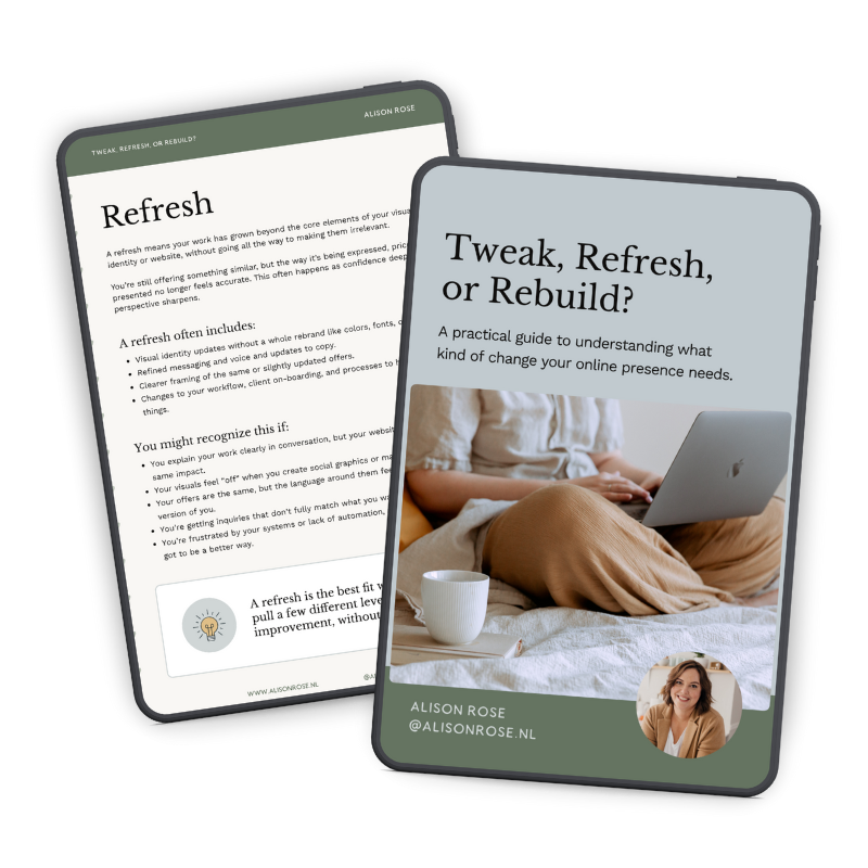 Get my free practical guide to understanding what kind of change your online presence needs.